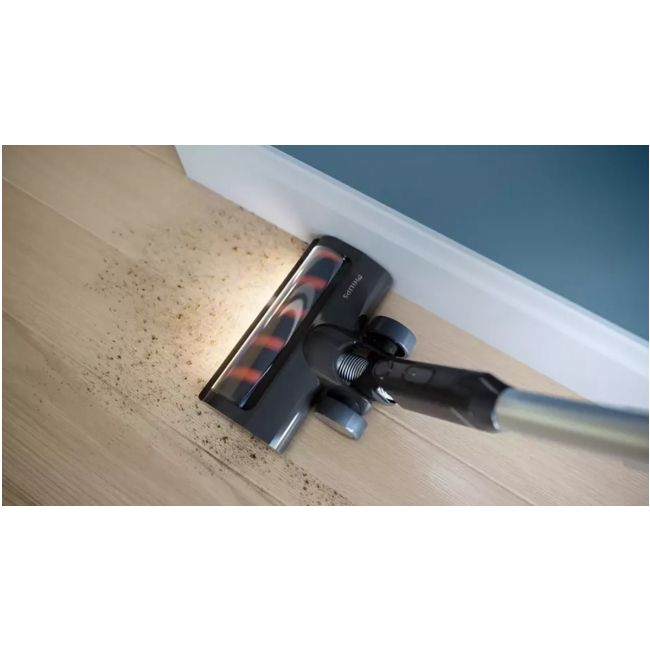 Z bezprzewodowym odkurzaczem 3000 firmy Philips wystarczy jedno sprzątanie, aby dokładnie wyczyścić podłogi. Nasadka z diodami LED pozwala uwidocznić ukryty kurz i brud, który następnie jest skutecznie usuwany dzięki technologii PowerCyclone 8. Aż 60 minut pracy na jednym ładowaniu¹ ułatwia sprzątanie domu.