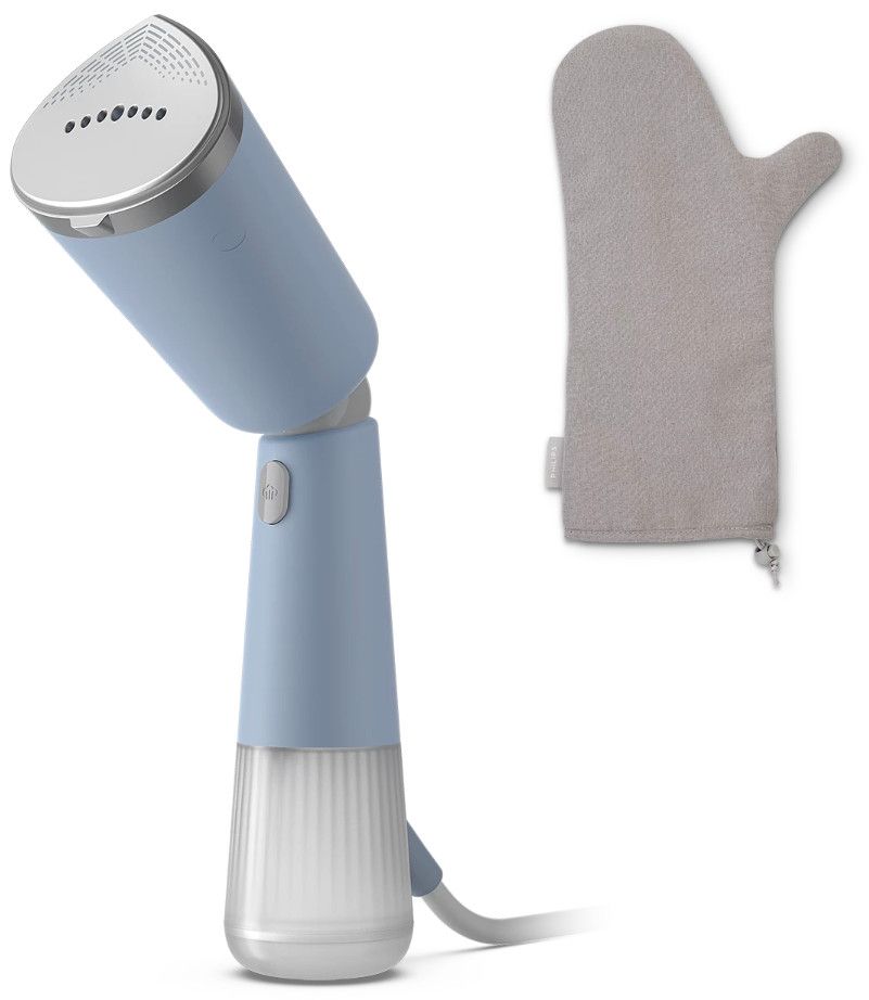 Parownica ręczna Philips 5000 jest dostarczana z akcesorium podróżnym 2w1, w którym można ją schludnie schować i chronić przed uderzeniami. Niezależnie od tego, jaki ubiór ze sobą zabierasz, w ciągu kilku minut będzie on bezpiecznie wyprasowany parowo, ponieważ akcesorium przekształca się w rękawicę ochronną, która dodatkowo chroni przed przypadkowym poparzeniem parą w domu lub poza nim.