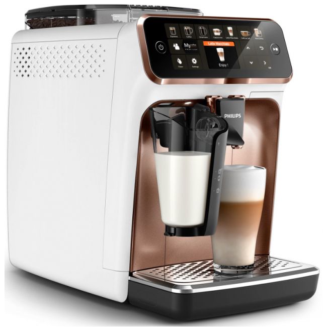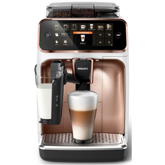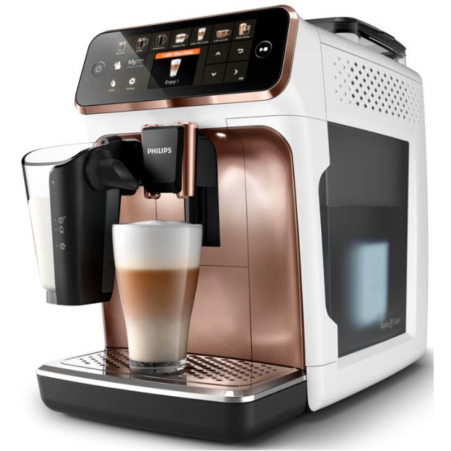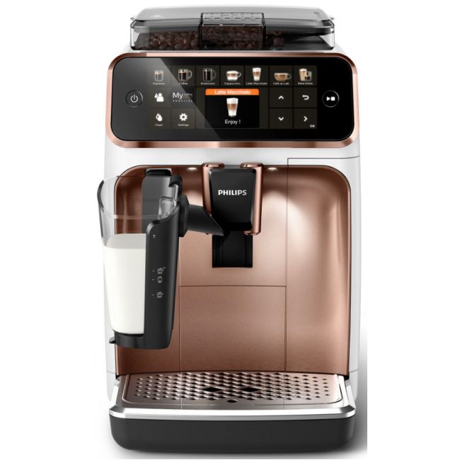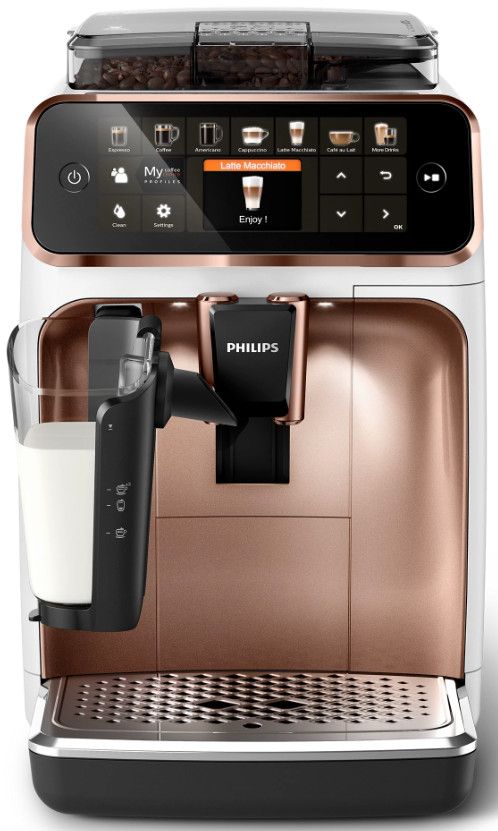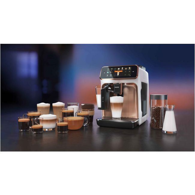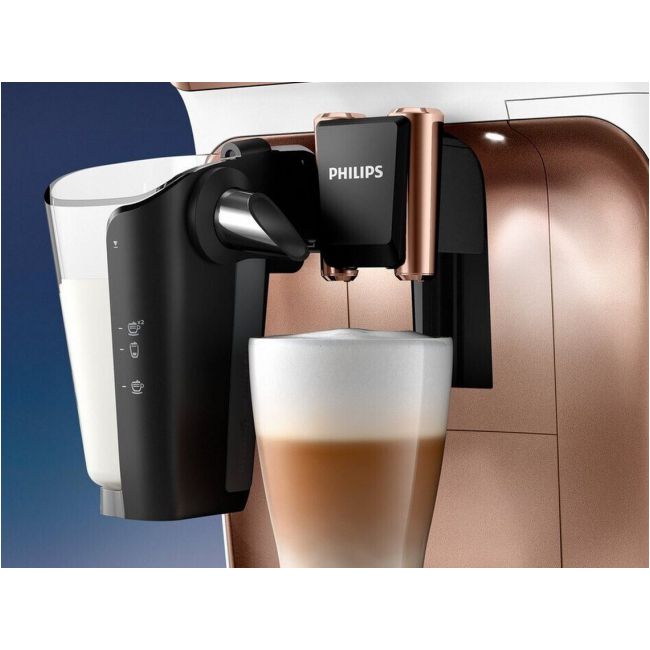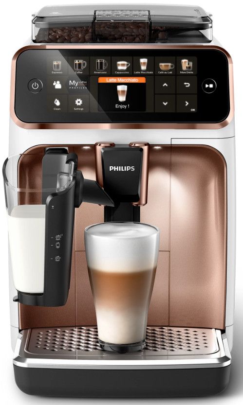 Wystarczy jeden przycisk, aby w łatwy sposób przygotować aromatyczną kawę — espresso, klasyczną czarną kawę, cappuccino czy latte macchiato. Prosty w użyciu system spieniania mleka LatteGo zwieńczy kawy mleczne aksamitną gładką pianką, a jego czyszczenie zajmie zaledwie 15 sekund*.