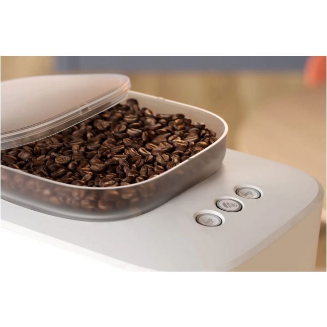 Twój osobisty barista, który zmieści się na każdym kuchennym blacie. Wsyp ziarna, przesuń uchwyt i delektuj się wyśmienitym espresso. Ekspres automatycznie mieli ziarna, uwalniając ich super świeży aromat. Perfekcyjnie ubija kawę w portafiltrze, a do tego idealnie dobiera ciśnienie. Twój nowy ulubiony barista, który czeka na każde skinienie. Przesuń uchwyt i przygotuj się na prawdziwe espresso ze świeżo zmielonych ziaren.