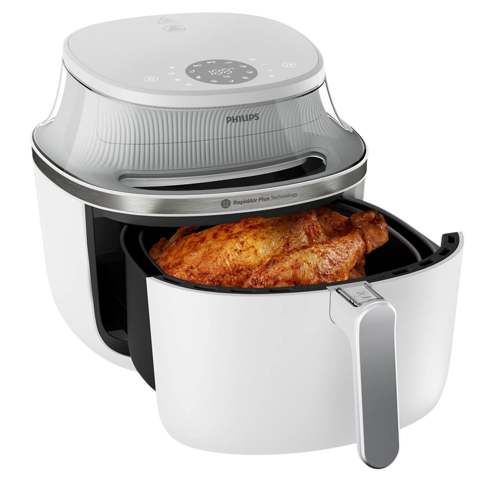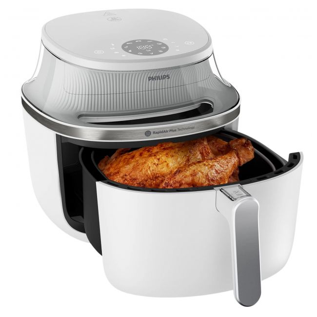 Opatentowana technologia RapidAir Plus z unikatową konstrukcją w kształcie gwiazdy pozwala na szybszą cyrkulację gorącego powietrza wokół i w środku żywności, zapewniając równomierne gotowanie wewnątrz i na zewnątrz, a tym samym smaczne domowe posiłki w czasie krótszym o 30%*