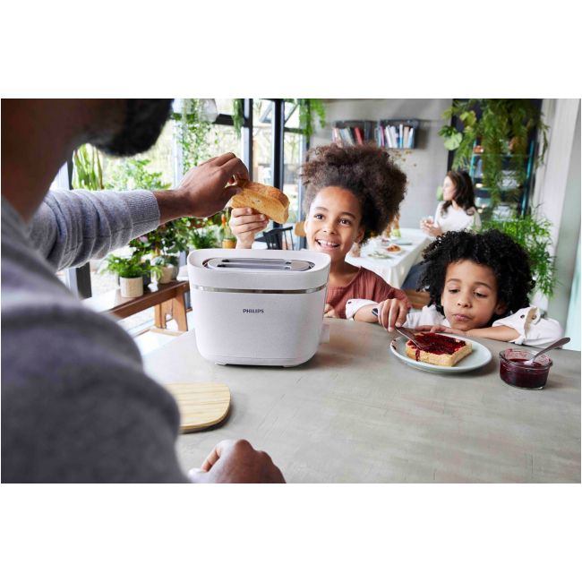 Do produkcji urządzenia wykorzystano 100% bioplastiku² pochodzącego z biologicznych i odnawialnych zasobów, np. oleju słonecznikowego. Zużyty olej, który pozostał po pieczeniu lub innych procesach produkcyjnych, jest zbierany i poddawany recyklingowi w ekologicznym procesie, który czyni go zdanym do kontaktu z żywnością. Toster został wyposażony w funkcję automatycznego wyłączania, zapewniającą dodatkowe bezpieczeństwo.