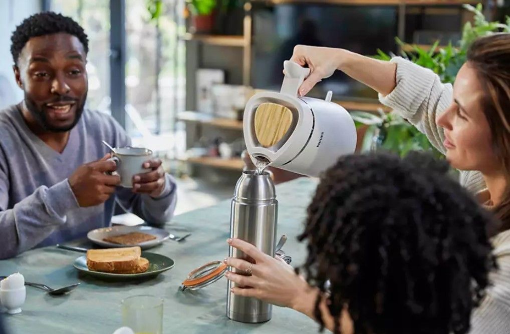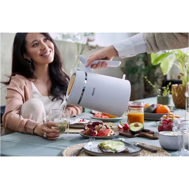 Konstrukcja inspirowana przez naturę charakteryzuje się łagodnymi kolorami i naturalnymi materiałami. Zawiera zdejmowaną pokrywę w stylowy drewniany wzór, która ułatwia napełnianie czajnika i czyszczenie. Kolekcja Philips Eco Conscious zdobyła nagrodę IF za wzornictwo oraz Red Dot in 2022 roku.